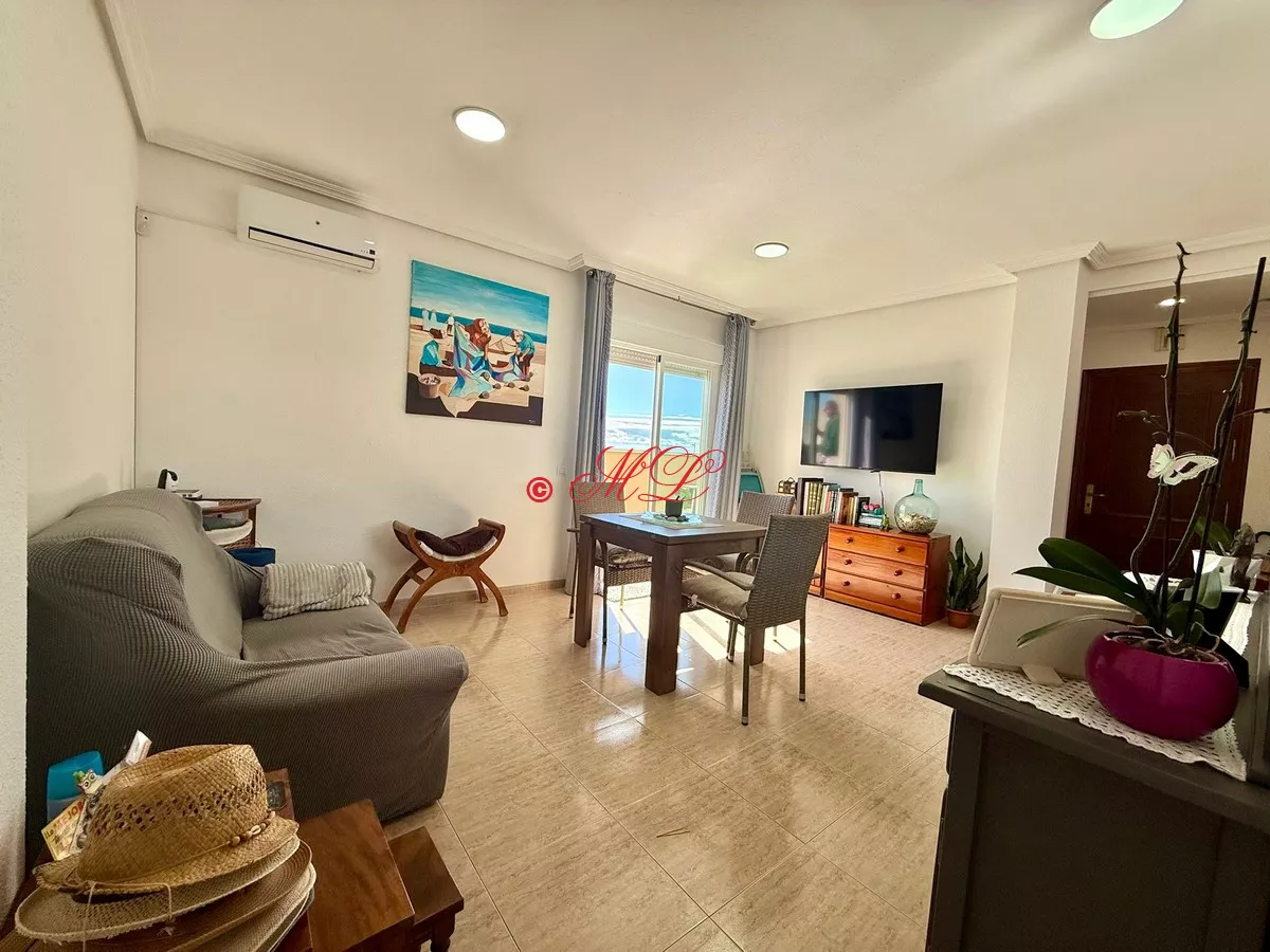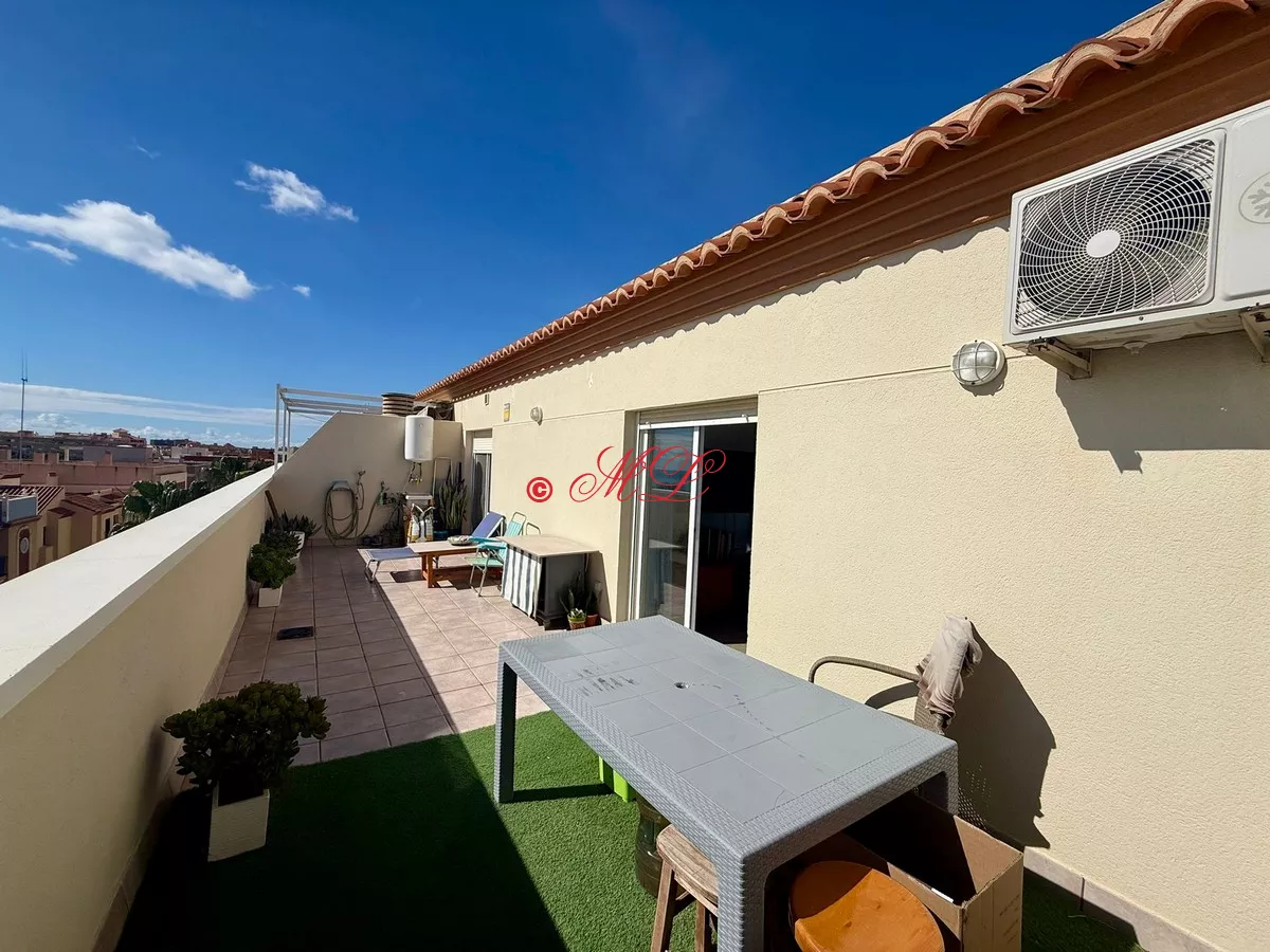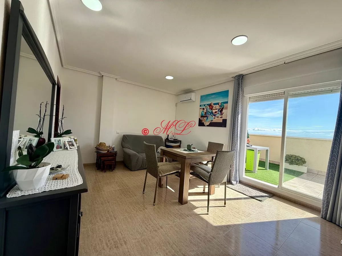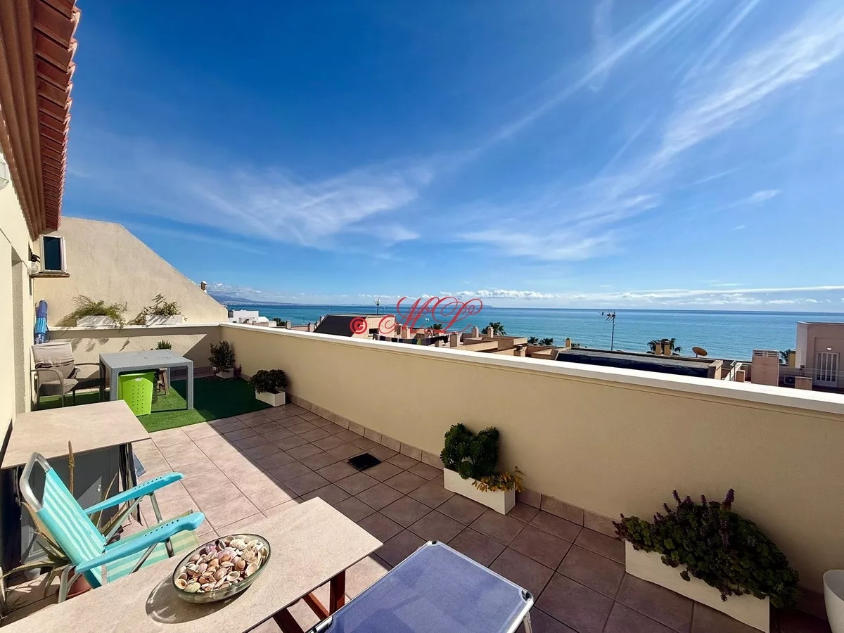 Luminoso ático en cuarta planta con ascensor. La vivienda cuenta con 75 m² construidos que se distribuyen en salón-comedor con acceso a una gran terraza con vistas al mar, cocina totalmente equipada, tres dormitorios con armarios empotrados, y un baño completo. El inmueble se vende amueblado y se encuentra en perfecto estado para entrar a vivir. Dispone de aire acondicionado.